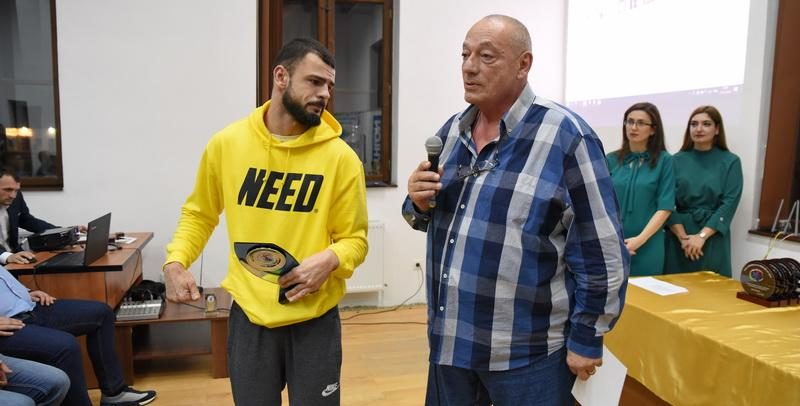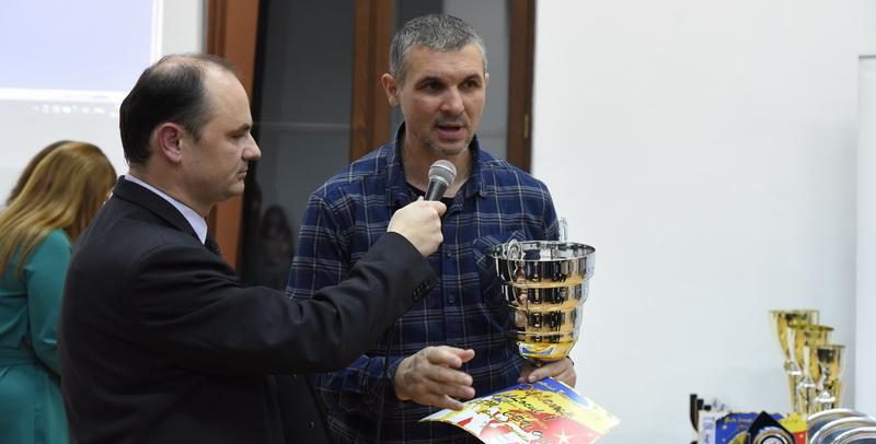 Un moment special l-a reprezentat premierea unui om care, chiar daca nu este sportiv de performanta, dovedeste prin ceea ce face, ca sportul este cel mai puternic aliat al sau in lupta cu obstacolele vietii. Andrei David este un tanar de 28 de ani, puternic si deosebit care, dupa nastere, in urma unei culpe medicale, s-a ales cu o tetrapareza spastica si alte probleme medicale. Dar prin ambitia lui foarte puternica, luptand zi de zi, ne demonstreaza noua tuturor ca este un invingator, este o reala motivatie pentru noi toti, un exemplu de urmat pentru a merge mai departe oricat ar fi de greu ar fi, ne indeamna sa nu renuntam niciodata la visul nostru, oricare ar fi el. Deviza lui Andrei este NeverGiveUp! StayPositive. De 10 ani Andrei merge la sala aproape zilnic, unde “trage de fiare” cu multa ravna, ceea ce i-a adus multe participari demonstrative la concursuri de culturism din tara si strainatate. Andrei a fost premiat joi seara chiar de cel care l-a invatat sa merga si care a luptat impreuna cu el timp de 14 ani impotriva necrutatoarei boli, kinetoterapeutul Adrian Rus, cunoscut in lumea sportului ca fost handbalist si antrenor.