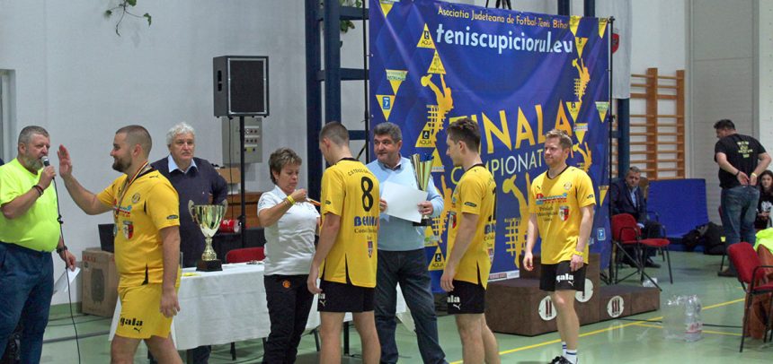 ”Ne bucură faptul că avem în Salonta o ramură sportivă, tenisul cu piciorul, sau labtenisul, cum o ştim noi, care ne încântă prin spectaculozitate şi ne reprezintă cu cinste în ţară, dar şi în străinătate. Este meritul acestui împătimit antrenor, Vasile Sorean” – a precizat Török László, edililul municipiului Salonta.